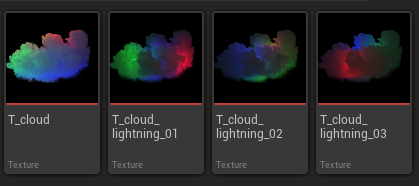 This way, by randomizing both the render target’s colors and the pattern that they are changing inside the material, I created emissive masks for the cloud that create the illusion of lightning strikes on a brewing storm.