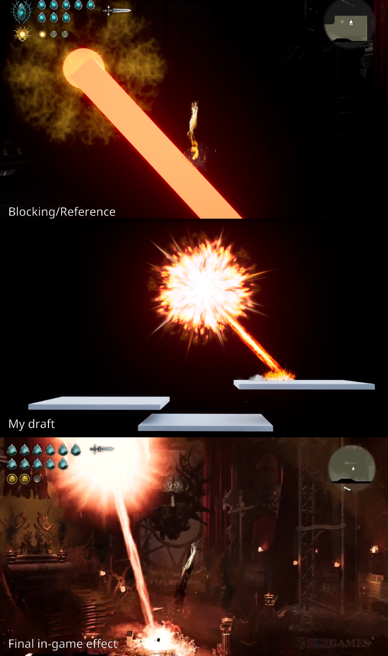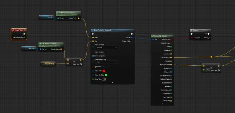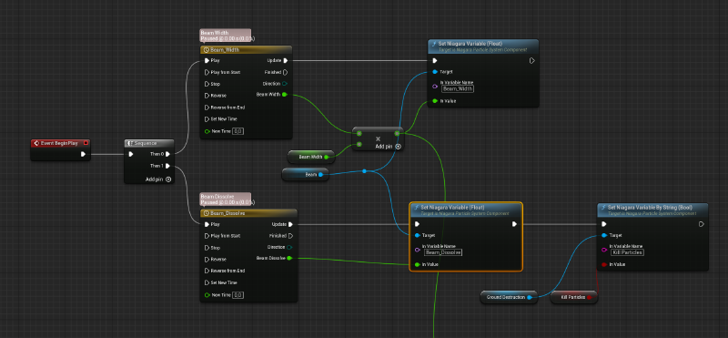 The beam was animated in blueprint so that game programmers could easily adjust the logic for different scenarios.