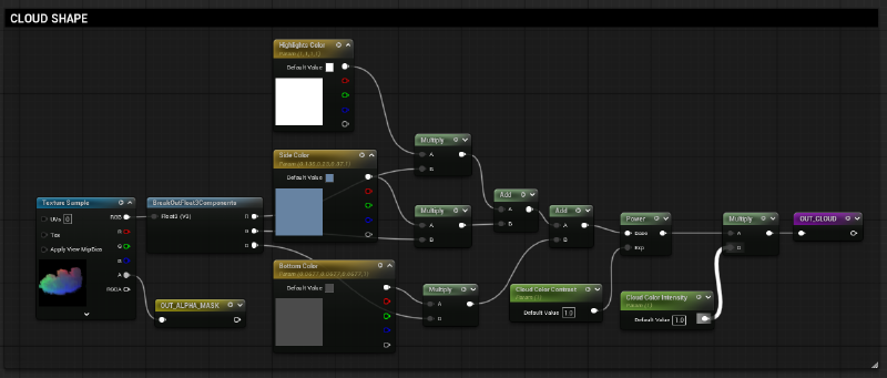The cloud was created in Embergen and utilizes a three-point lighting system with randomized positions and RGB values for shading.