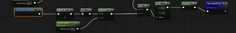The height of the liquid is based on a simple gradient on Z coordinates. To make this work we should subtract the Position of the object from the World Position to basically pin the mask on the object and not be relative to world coordinates.