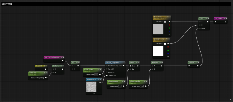 To finalize the look of the shader and especially make it fit the IP, we should create some floating glitter.