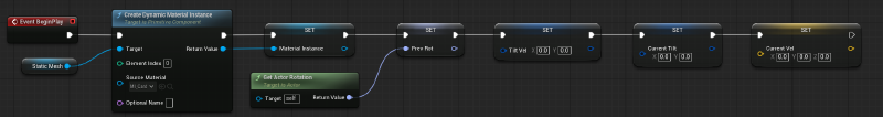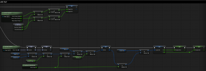 First of all we should initialize the core Variables. Those are the Actor’s rotation, the initial Rotation, the Tilt parameters like current tilt and velocity based tilt and the initial Velocity.