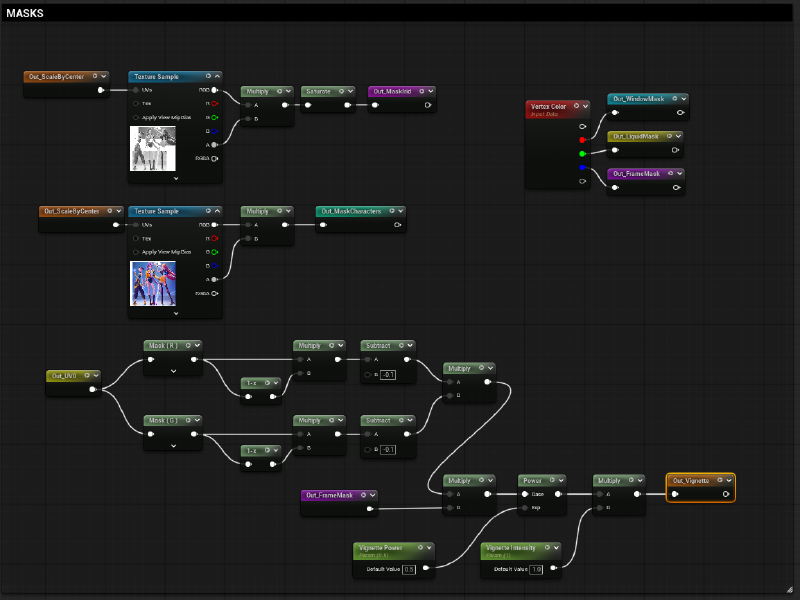 With this setup it is really easy to create multiple complex masking systems for different kinds of effects procedurally.