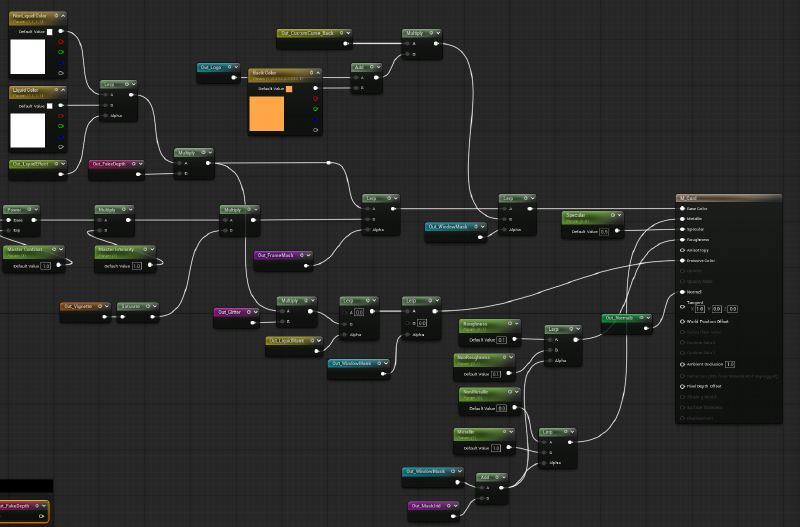 By combining different Noise Normals and a gradient mask for fake depth, we can make the liquid shader more convincing and appealing especially when the card is moving and the whole setup is fired up.